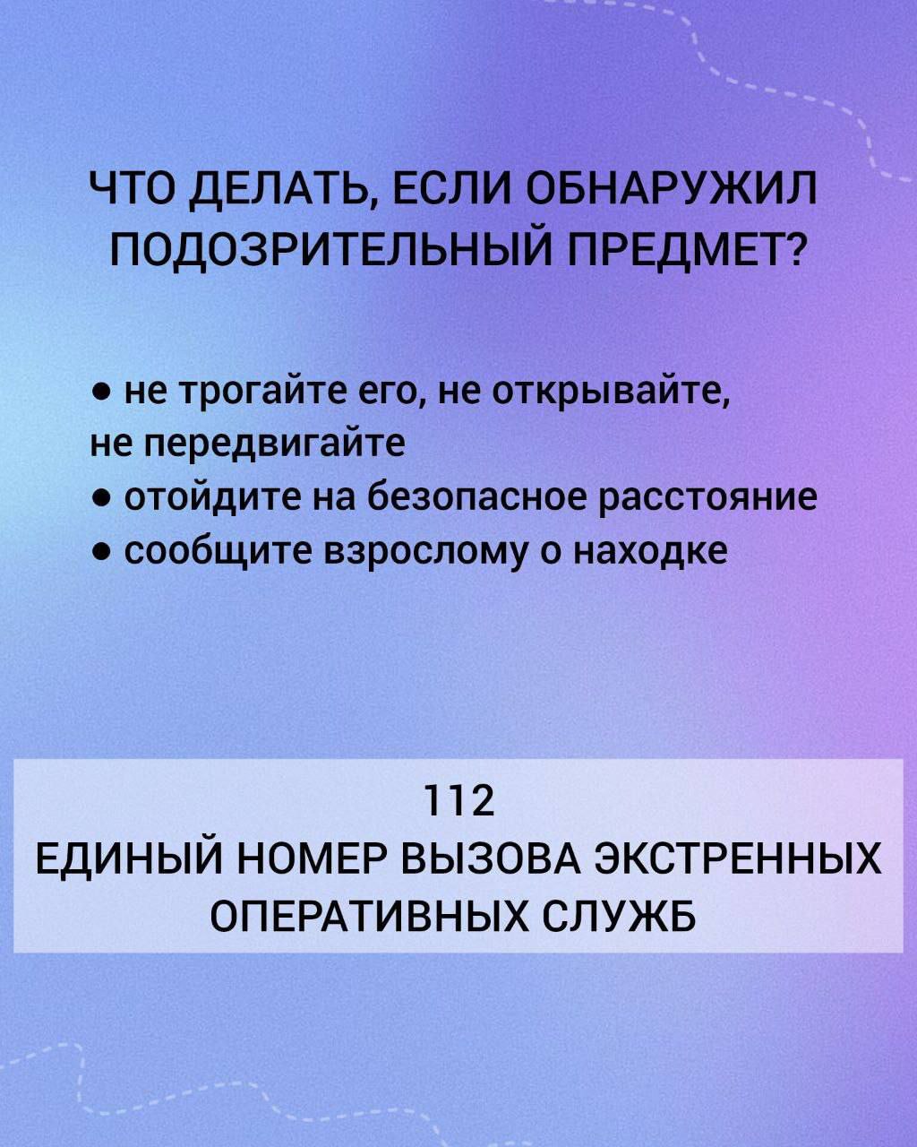 Собрали правила, как действовать при обнаружении подозрительного предмета. Обязательно проговорите их с детьми.