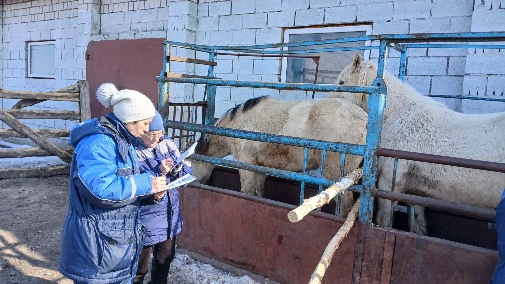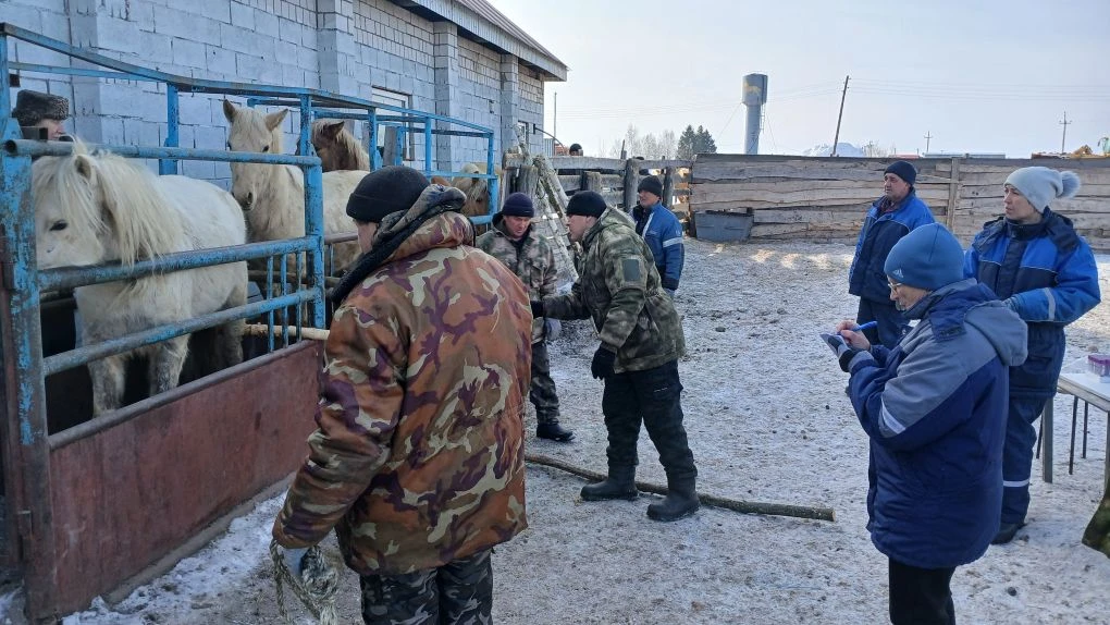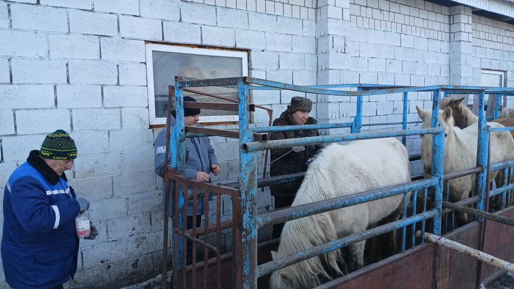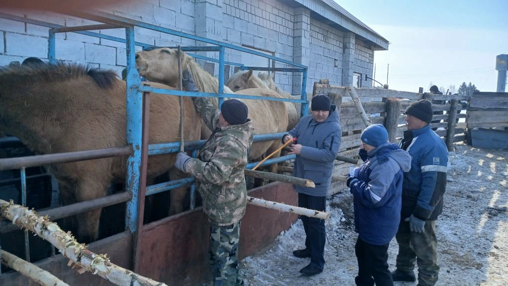Полевая работа сотрудников селекционного центра по разведению татарской породы лошадей
