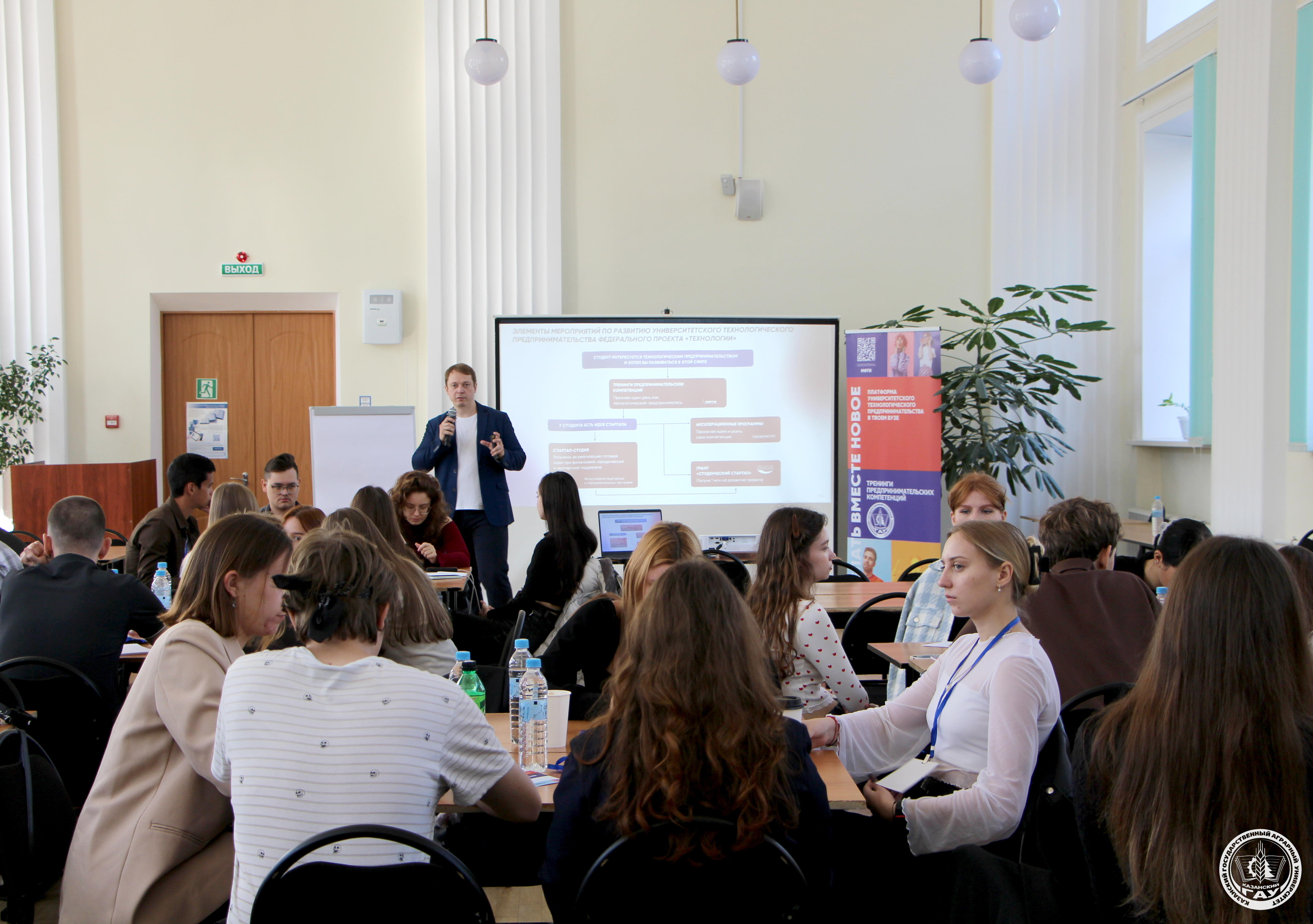 Кичә Казан дәүләт аграр университетында старт алган кызыклы чара дәвам итә! Студентлартехнологик эшмәкәрлек нигезләренә чумуны дәвам итәләр, проектлар эшләү һәм нәтиҗәле командалар формалаштыру серләрен өйрәнәләр.